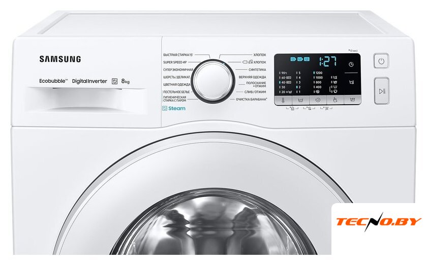 отдельностоящая, стиральная машина, с паром, загрузка до 8 кг, отжим 1200 об/мин, глубина 44 см (с люком 51.5 см), 14 программ, AI EcoBubble (Samsung)
