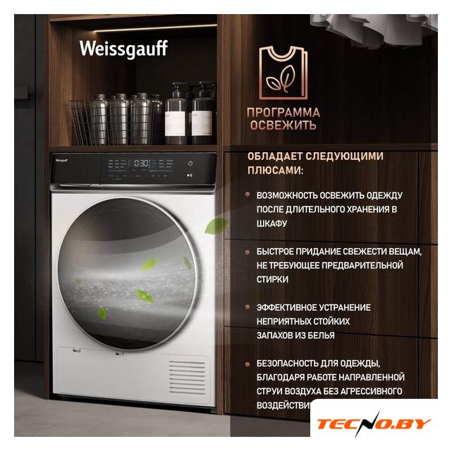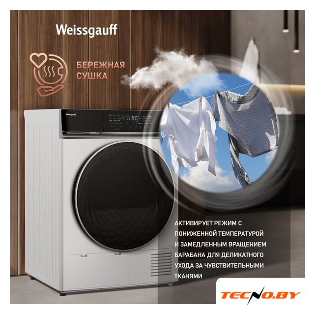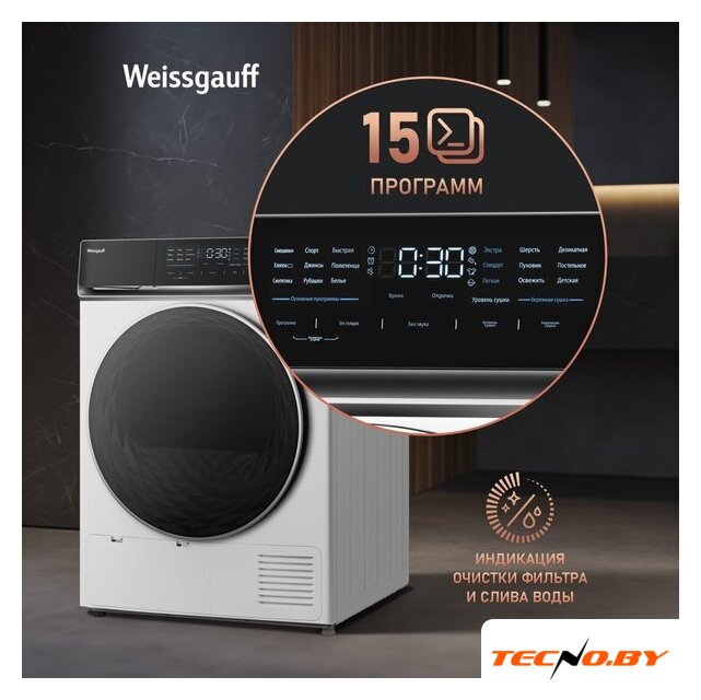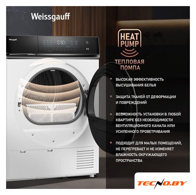 отдельностоящая, сушильная машина, сушка: конденсация с тепловым насосом, с паром, загрузка до 10 кг, глубина 62 см, энергопотребление A+++, 15 программ