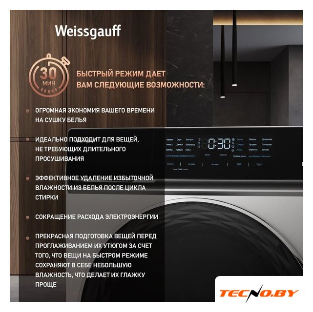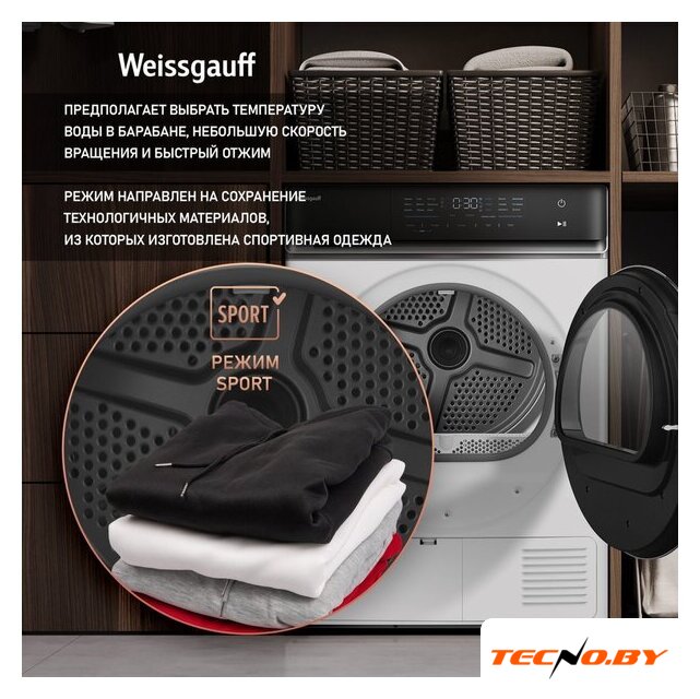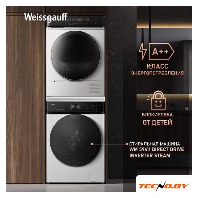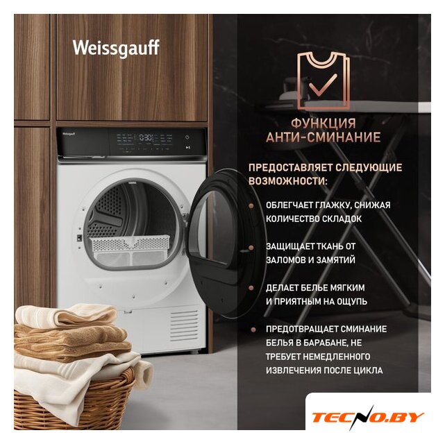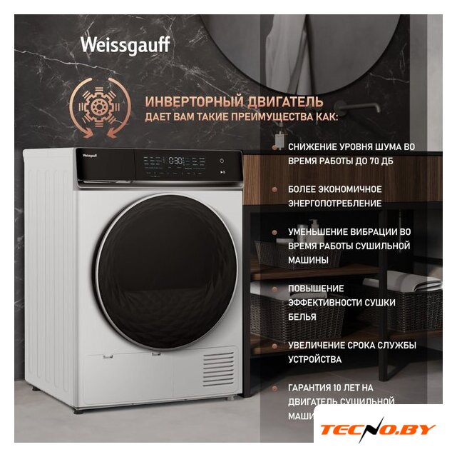 отдельностоящая, сушильная машина, загрузка до 10 кг, глубина 62 см, энергопотребление A++, 16 программ