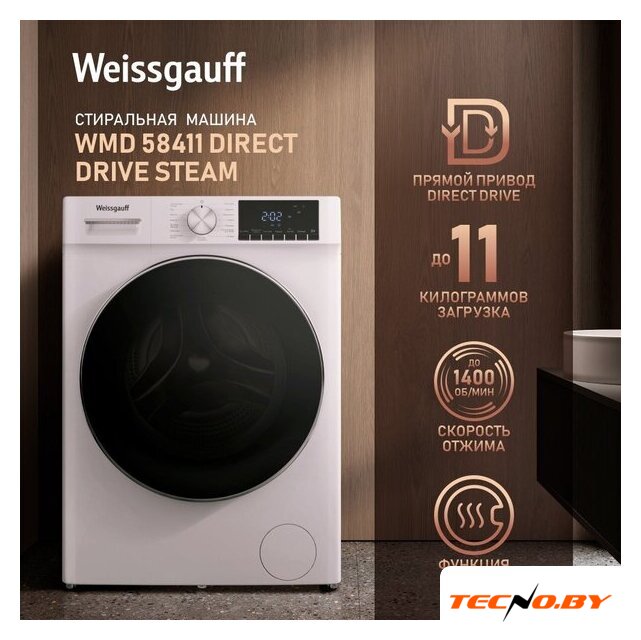 отдельностоящая, стирально-сушильная машина, с паром, загрузка до 11 кг, отжим 1400 об/мин, глубина 60 см (с люком 64 см), AI Control (Samsung)/AI EcoBubble (Samsung)
