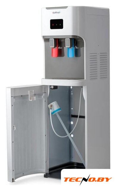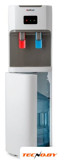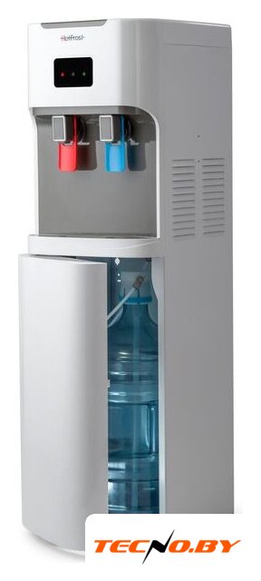 напольный, компрессорное охлаждение, нагрев, бутыль сверху, кран: нажим кружкой, встроенный холодильник