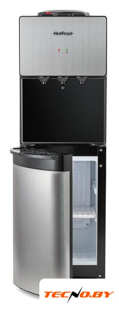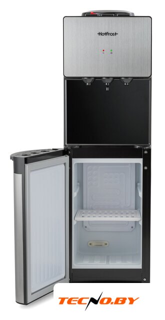 напольный, компрессорное охлаждение, нагрев, бутыль сверху, кран: нажим кружкой, встроенный холодильник
