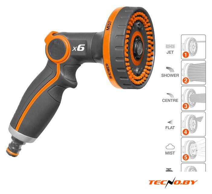 распылитель пистолет, 6 режимов, пластик, с регулировкой расхода, с регулировкой дальности