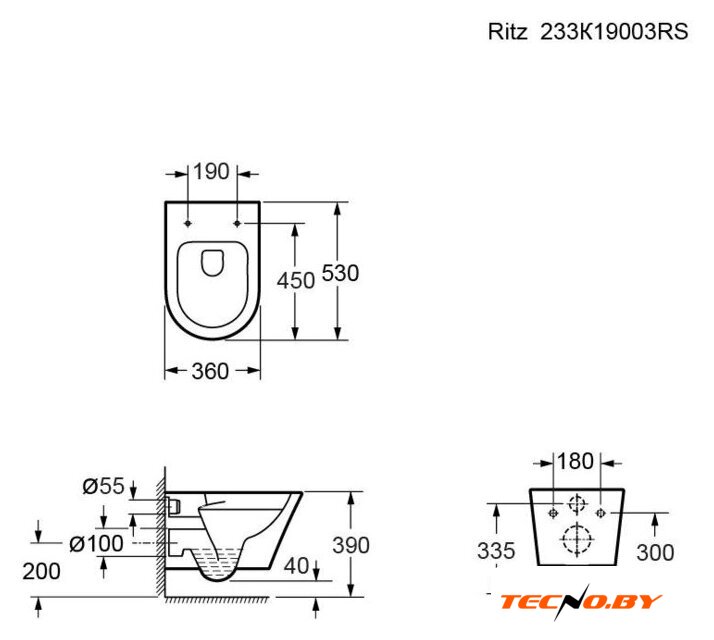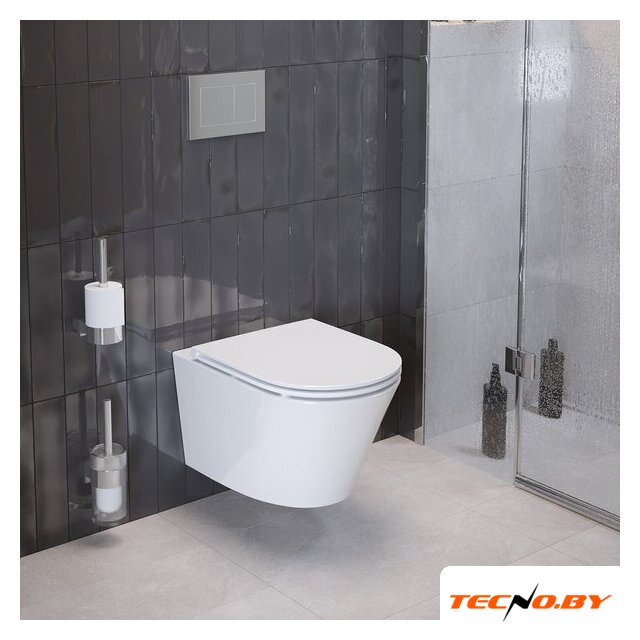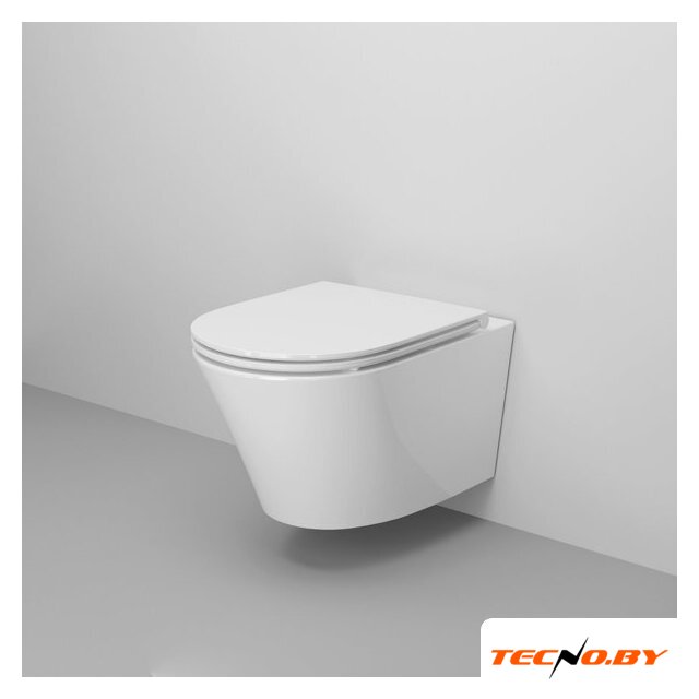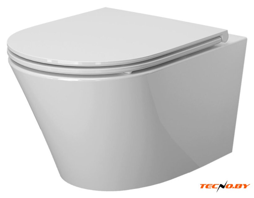 подвесной, конструкция: без бачка, задний подвод воды, горизонтальный выпуск, с сиденьем, безободковый