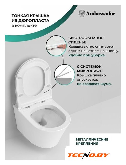 подвесной, конструкция: без бачка, горизонтальный выпуск, с сиденьем, безободковый