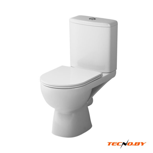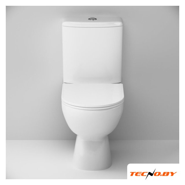 напольный, конструкция: компакт, задний подвод воды, горизонтальный выпуск, однорежимный слив, с сиденьем, безободковый