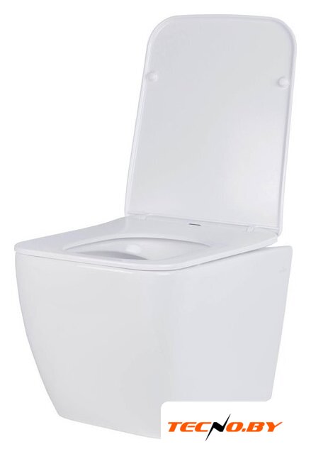 подвесной, конструкция: без бачка, задний подвод воды, горизонтальный выпуск, двухрежимный слив, с сиденьем, безободковый