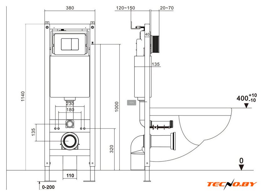 | Отверстия под инсталляцию | 180 мм |