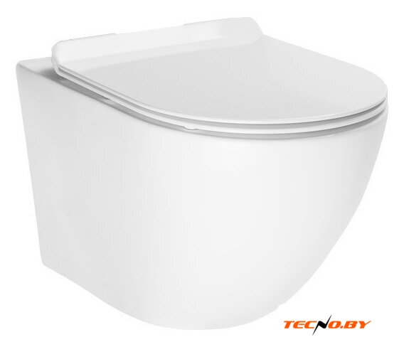 подвесной, конструкция: без бачка, задний подвод воды, горизонтальный выпуск, однорежимный слив, с сиденьем, безободковый