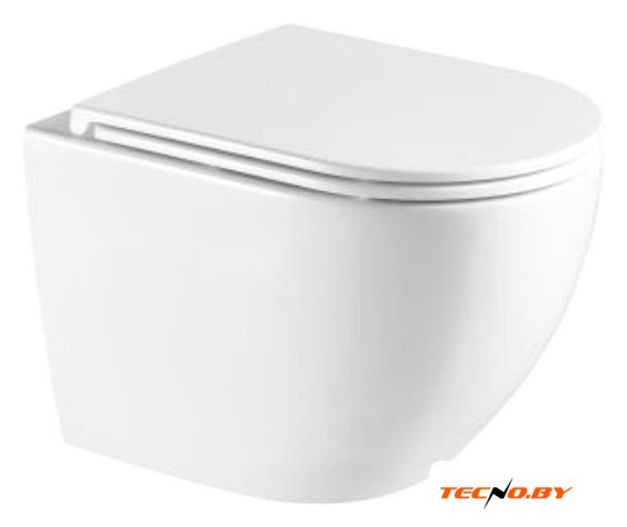 подвесной, конструкция: без бачка, задний подвод воды, горизонтальный выпуск, однорежимный слив, с сиденьем, безободковый