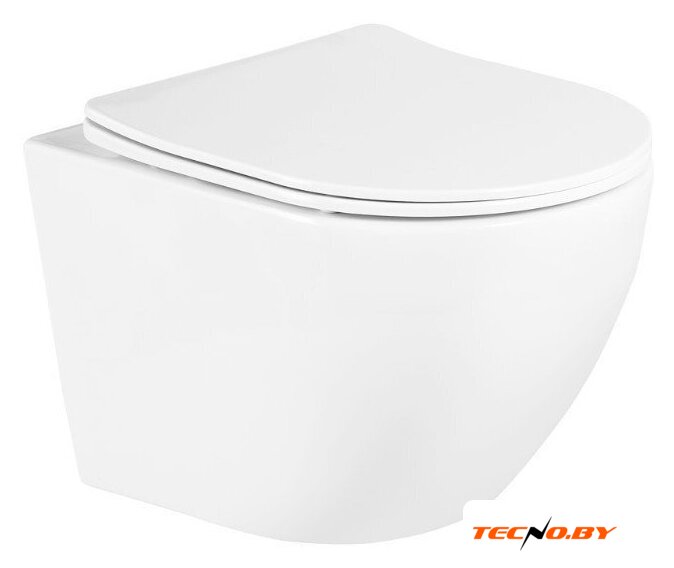подвесной, конструкция: без бачка, задний подвод воды, горизонтальный выпуск, с сиденьем, безободковый