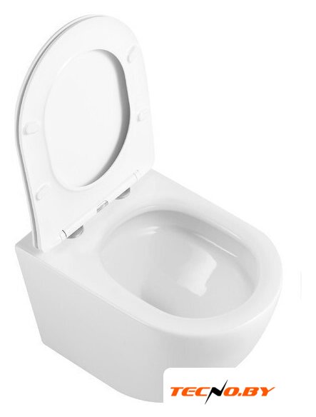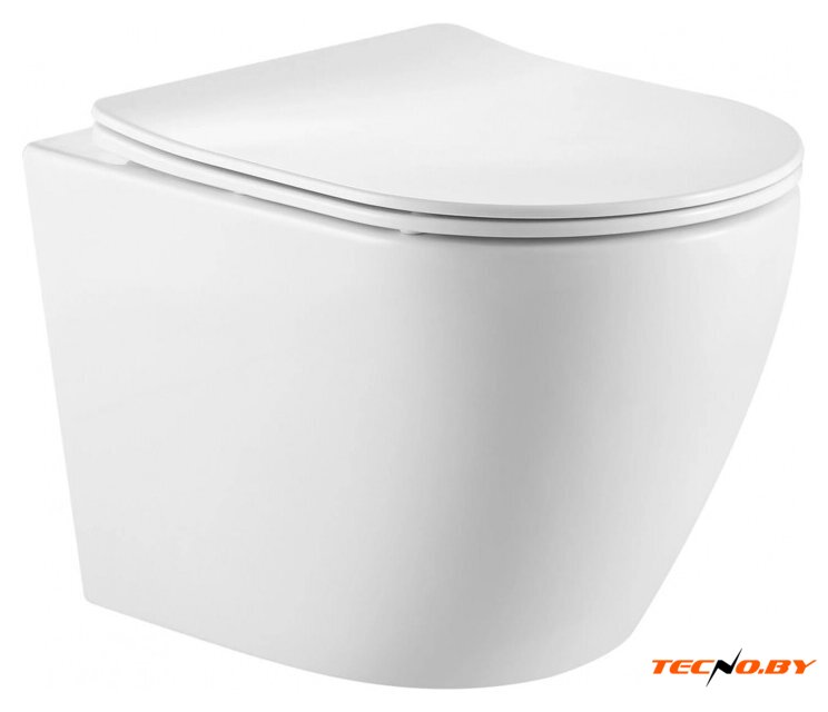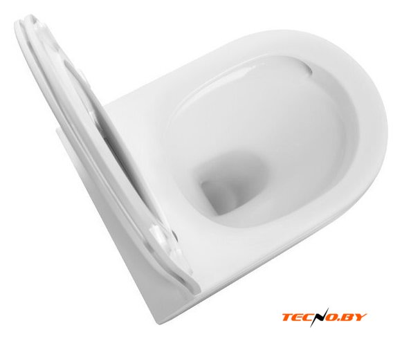 подвесной, конструкция: без бачка, задний подвод воды, горизонтальный выпуск, однорежимный слив, с сиденьем, безободковый