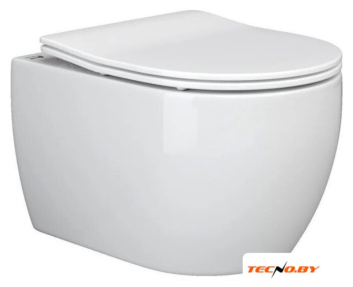 подвесной, без бачка, задний подвод воды, горизонтальный выпуск, двухрежимный слив, с сиденьем
