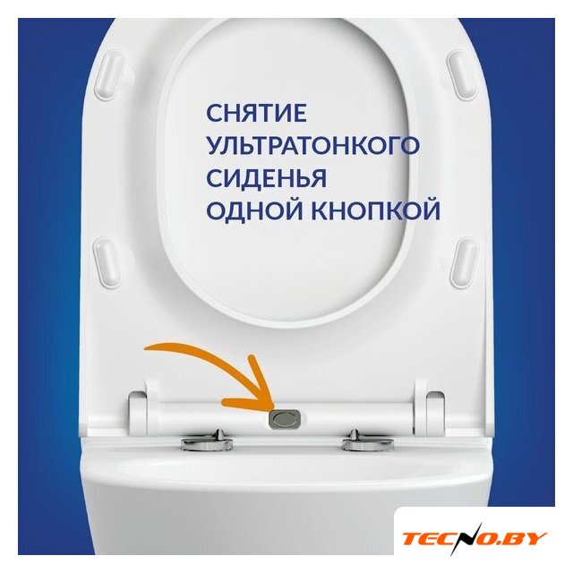подвесной, конструкция: без бачка, задний подвод воды, горизонтальный выпуск, двухрежимный слив, с сиденьем, безободковый