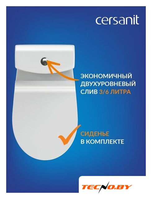 напольный, конструкция: компакт, горизонтальный выпуск, двухрежимный слив, с сиденьем, безободковый