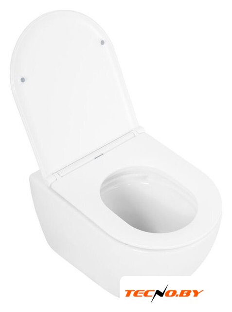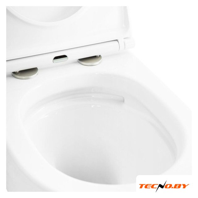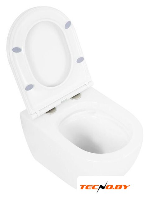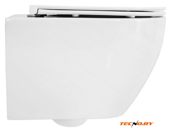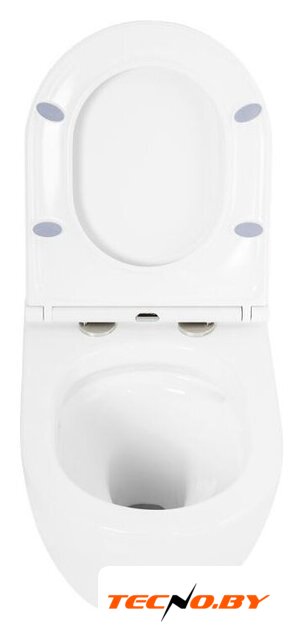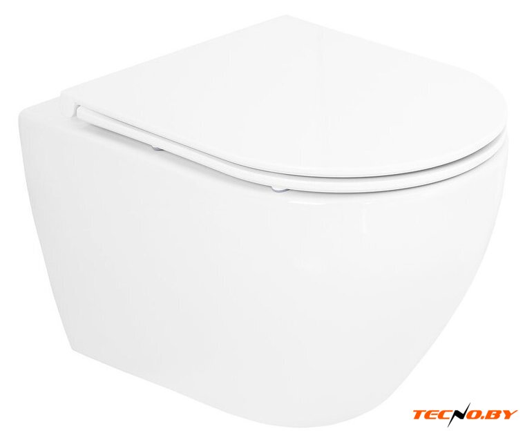 подвесной, конструкция: без бачка, задний подвод воды, горизонтальный выпуск, двухрежимный слив, с сиденьем, безободковый