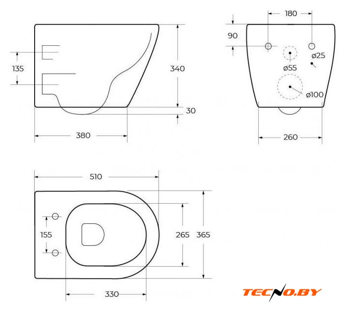 подвесной, конструкция: без бачка, задний подвод воды, горизонтальный выпуск, двухрежимный слив, с сиденьем