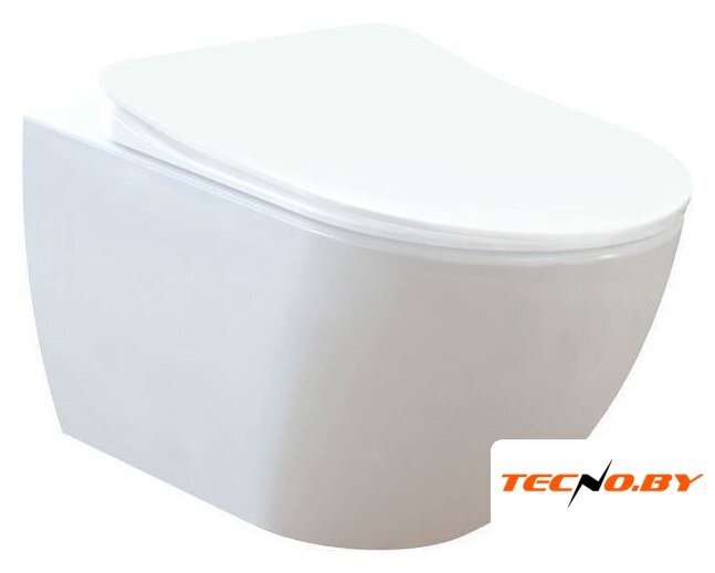 подвесной, конструкция: без бачка, задний подвод воды, горизонтальный выпуск, двухрежимный слив, с сиденьем, безободковый