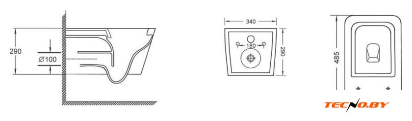 подвесной, конструкция: без бачка, горизонтальный выпуск, с сиденьем
