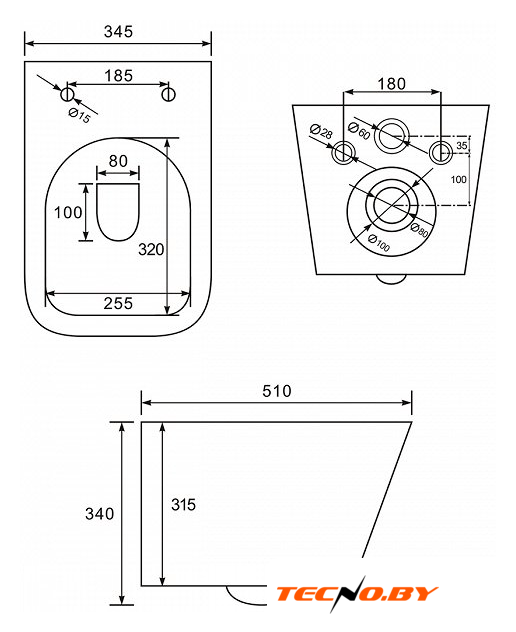 подвесной, без бачка, горизонтальный выпуск, с сиденьем