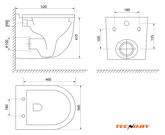 подвесной, задний подвод воды, с сиденьем, безободковый