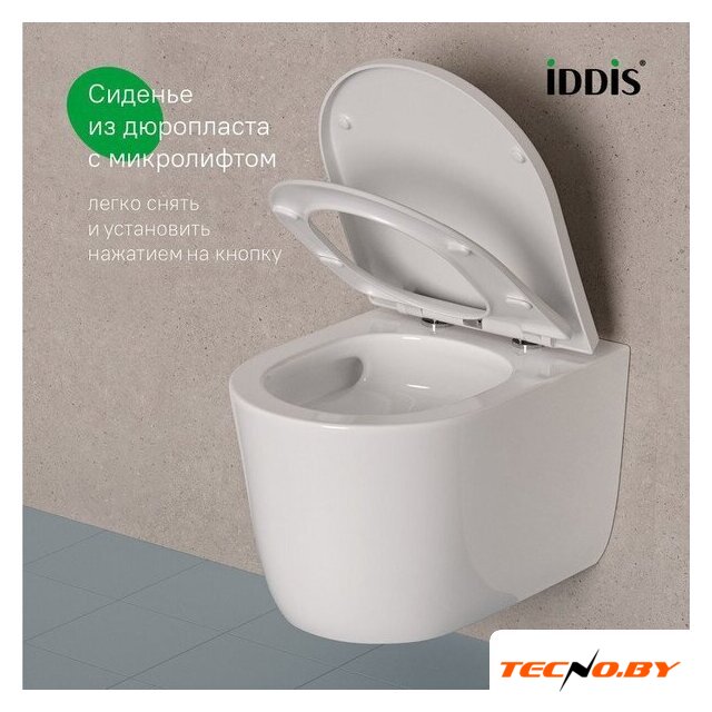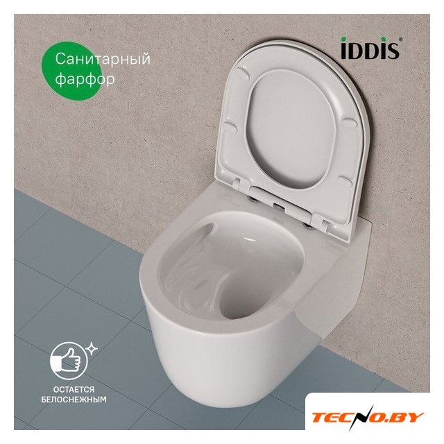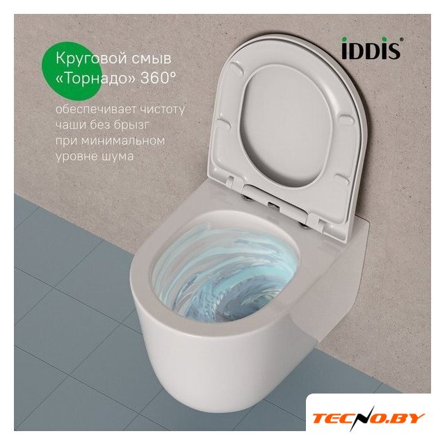 подвесной, конструкция: без бачка, задний подвод воды, горизонтальный выпуск, двухрежимный слив, с сиденьем, безободковый