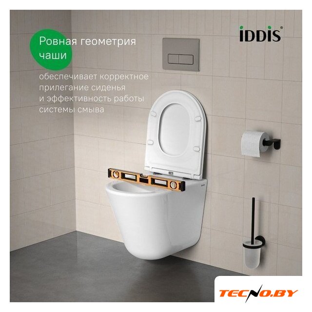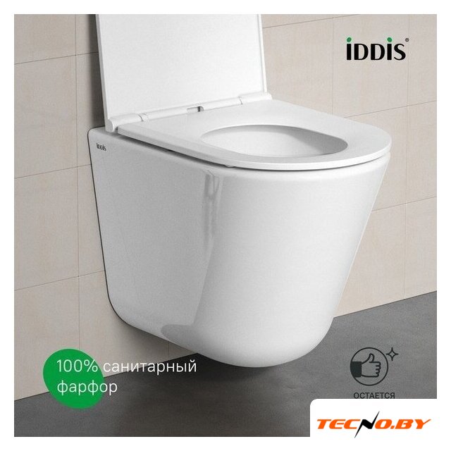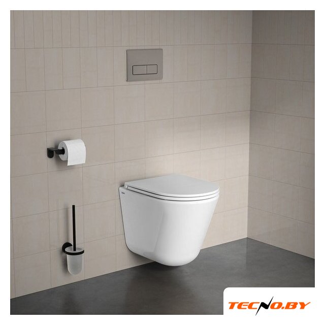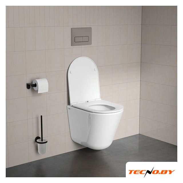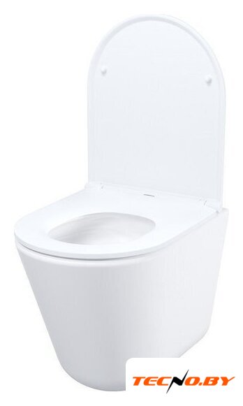 подвесной, конструкция: без бачка, задний подвод воды, горизонтальный выпуск, однорежимный слив, с сиденьем, безободковый