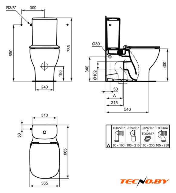 напольный, конструкция: компакт, нижний подвод воды, универсальный выпуск, двухрежимный слив, с сиденьем