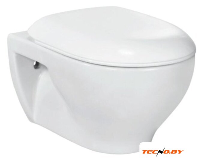 подвесной, конструкция: без бачка, задний подвод воды, горизонтальный выпуск, однорежимный слив, с сиденьем, безободковый
