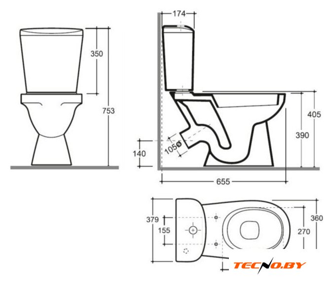 Поставляется с необходимой комплектацией, включая бачок для слива и дюропластовое сиденье, что позволяет сразу после монтажа приступить к эксплуатации. Отсутствие необходимости в инсталляции делает установку быстрой и простой. Бачок регулирует поток воды, предлагая экономичный и эффективный вариант смыва.