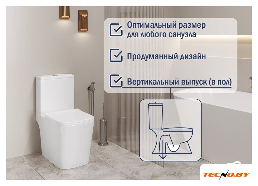 напольный, компакт, нижний подвод воды, горизонтальный выпуск, с сиденьем
