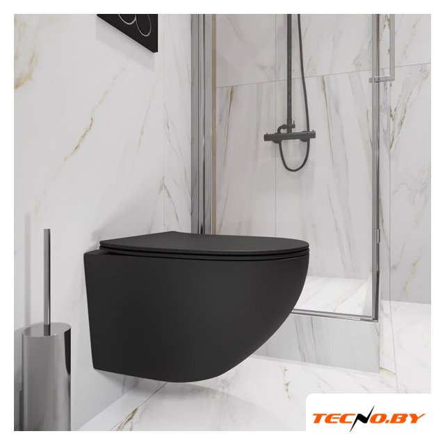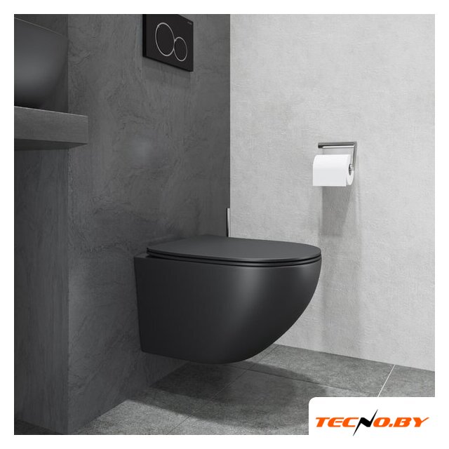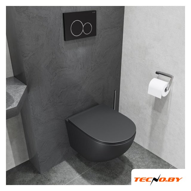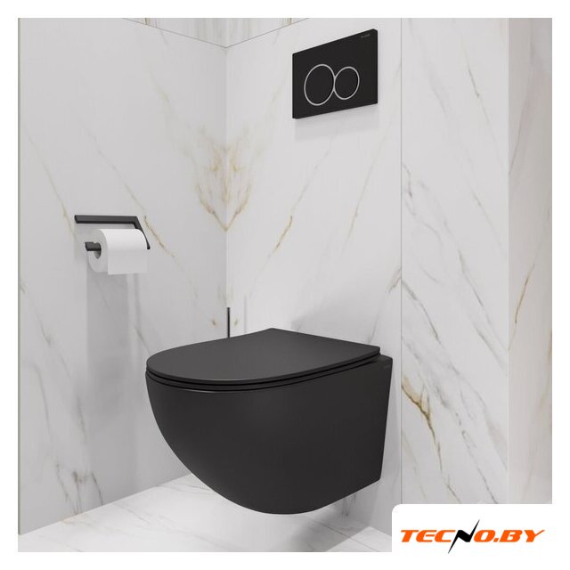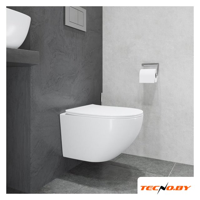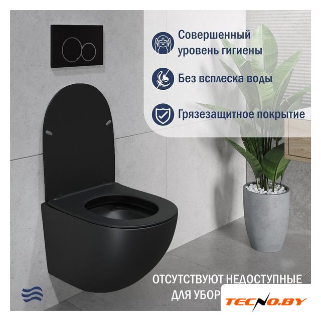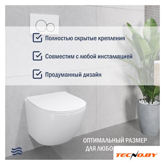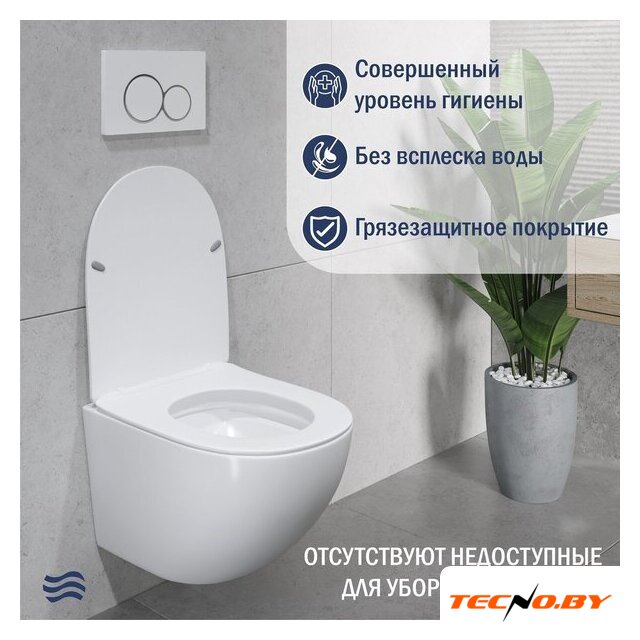 подвесной, конструкция: без бачка, задний подвод воды, горизонтальный выпуск, двухрежимный слив, с сиденьем, безободковый