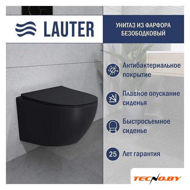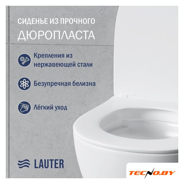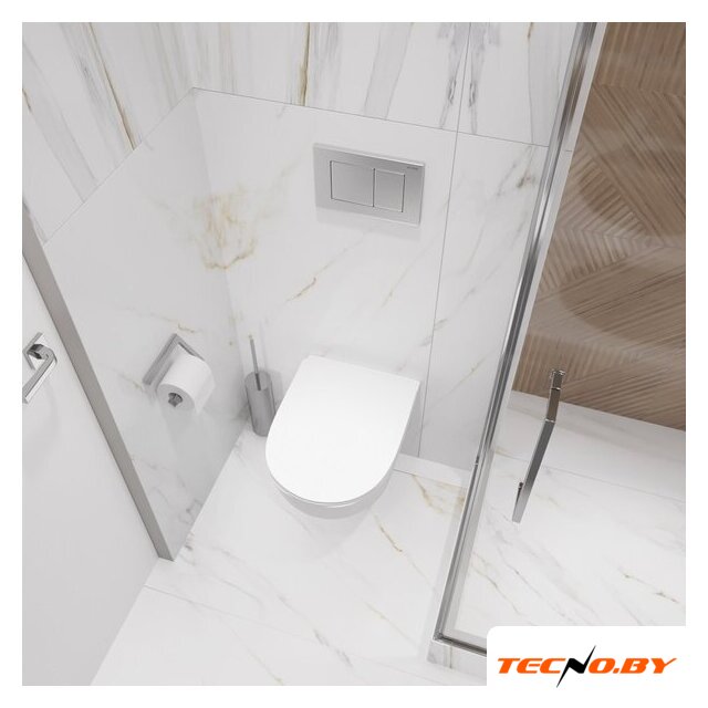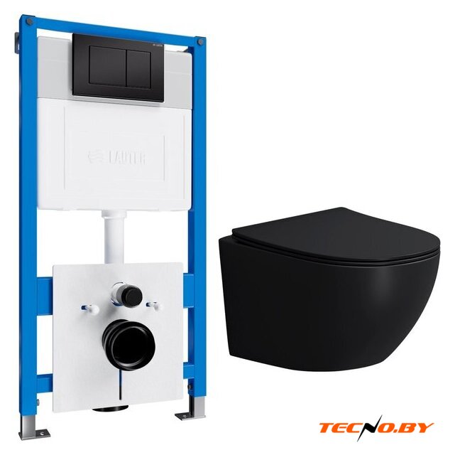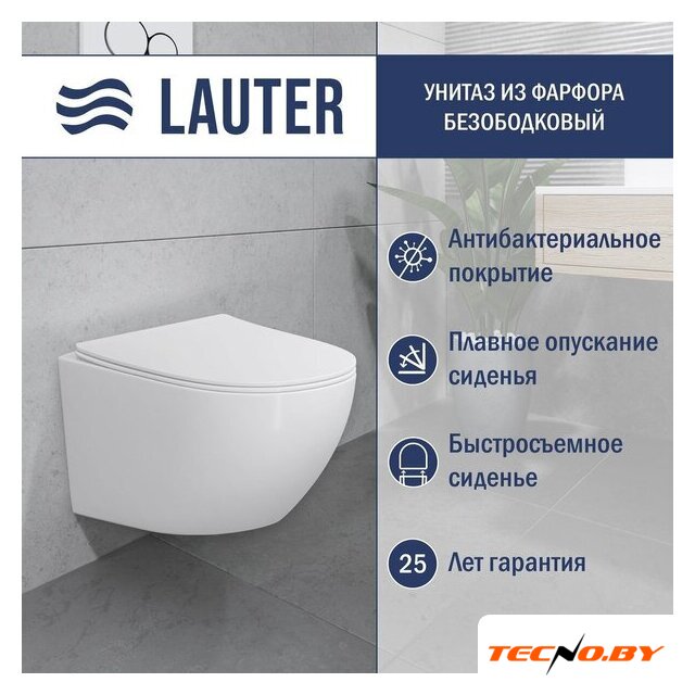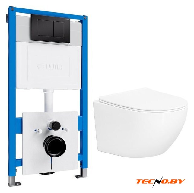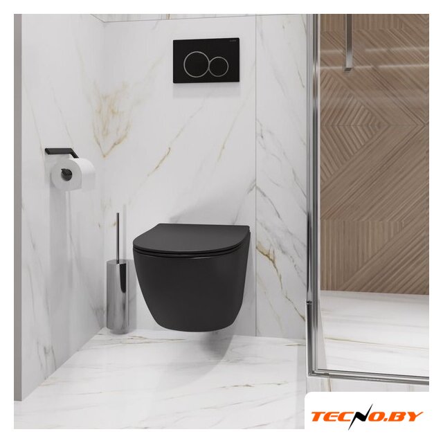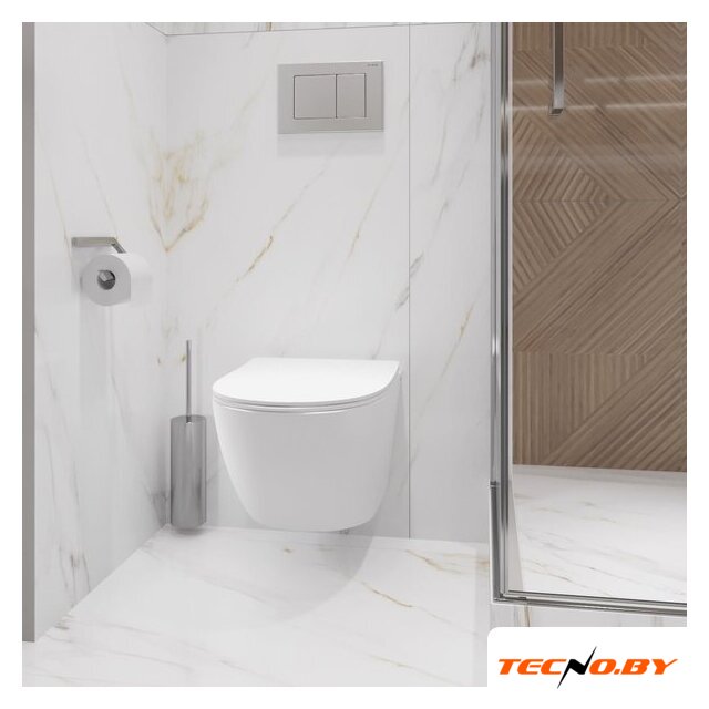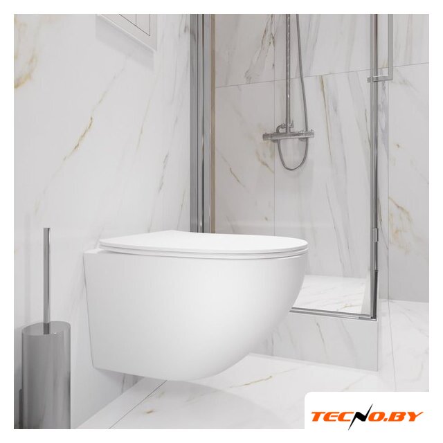 подвесной, конструкция: без бачка, задний подвод воды, горизонтальный выпуск, двухрежимный слив, с сиденьем, безободковый