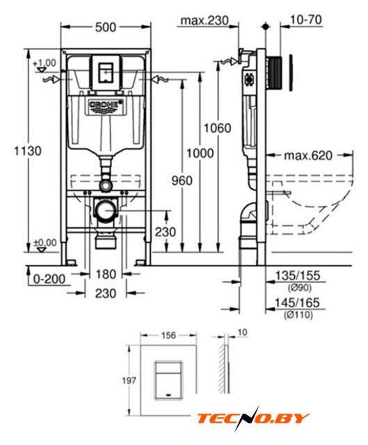 | Отверстия под инсталляцию | 230 мм |