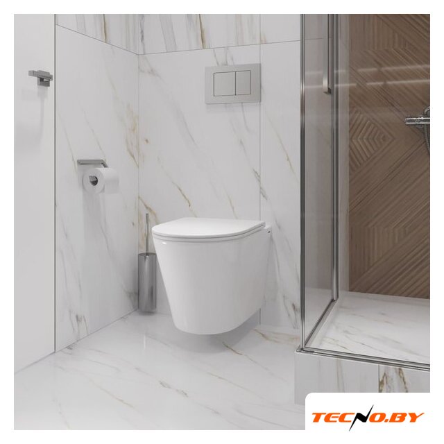 подвесной, без бачка, задний подвод воды, горизонтальный выпуск, двухрежимный слив, с сиденьем