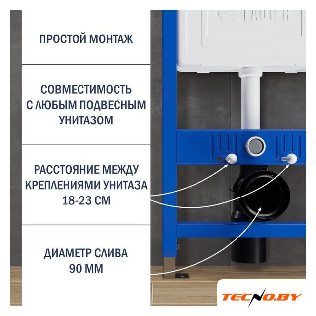 | Отверстия под инсталляцию | 180 мм |