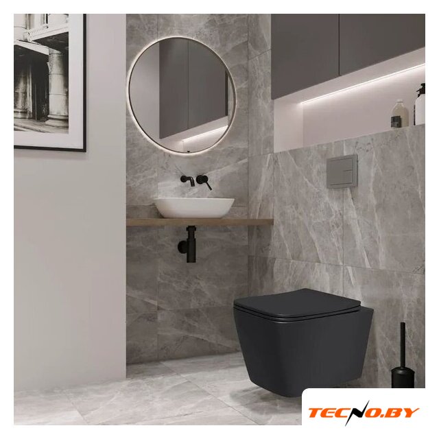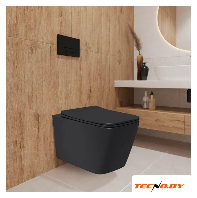 подвесной, конструкция: компакт, задний подвод воды, горизонтальный выпуск, двухрежимный слив, с сиденьем, безободковый