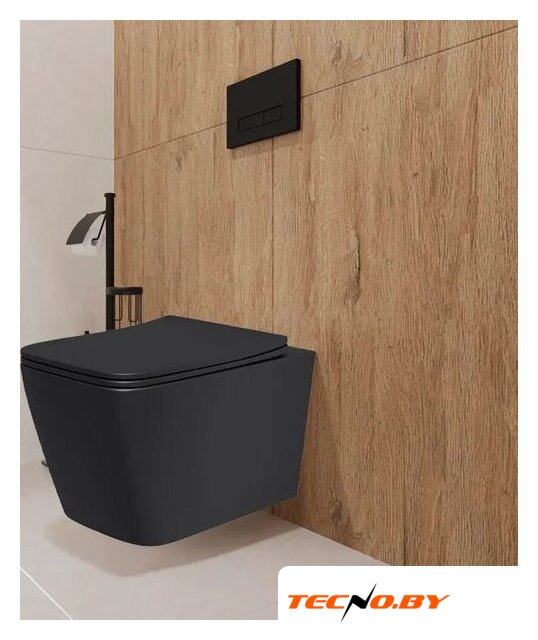 подвесной, конструкция: без бачка, задний подвод воды, горизонтальный выпуск, двухрежимный слив, с сиденьем, безободковый