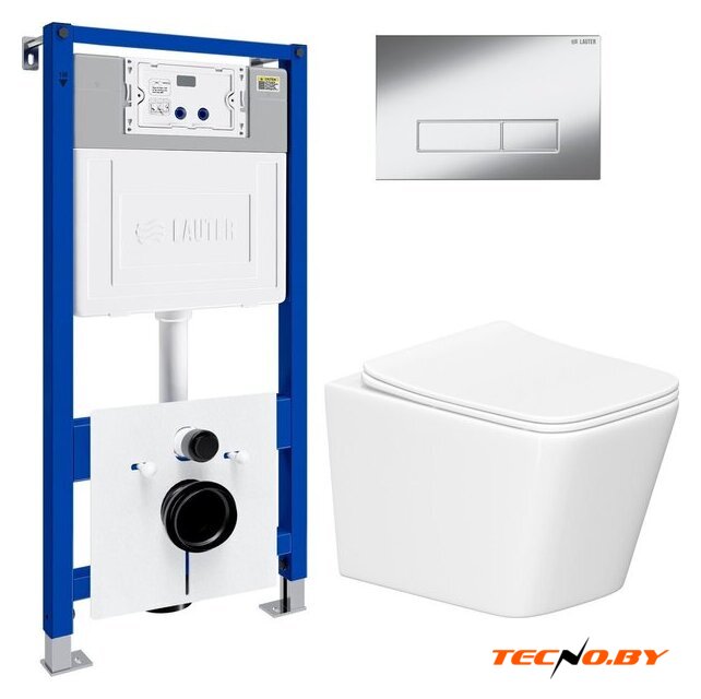 Унитазы Lauter Lauter Square 214903 с кнопкой 219701HD (узкая, хром)