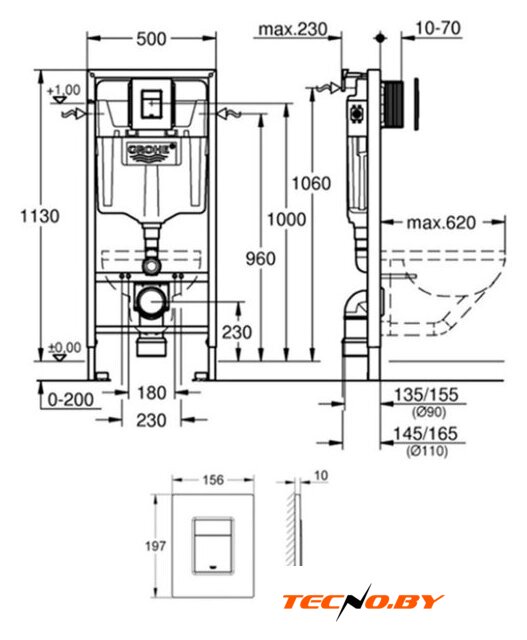 | Отверстия под инсталляцию | 180 мм |