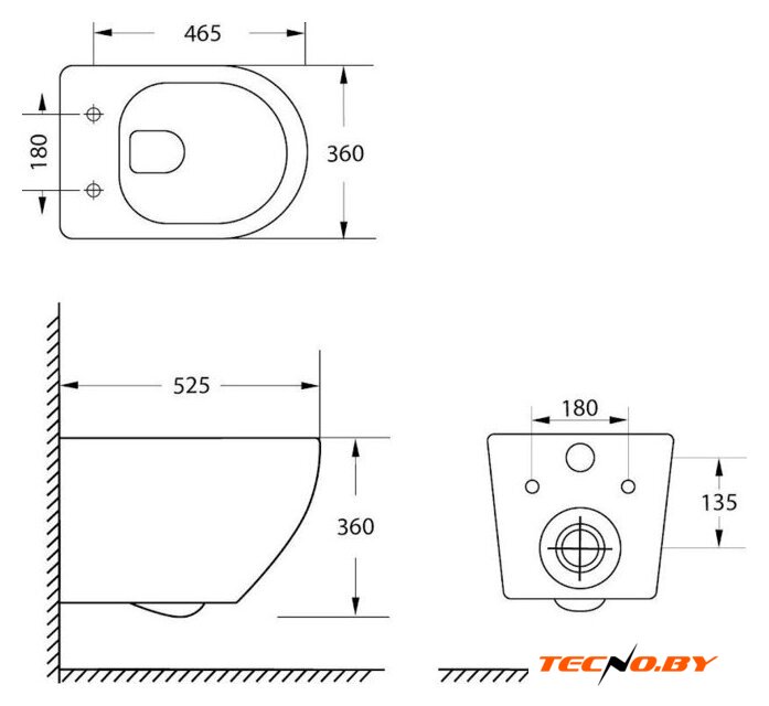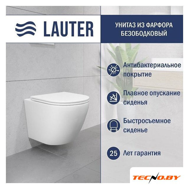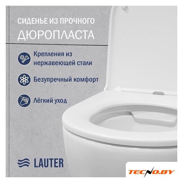 подвесной, без бачка, горизонтальный выпуск, с сиденьем