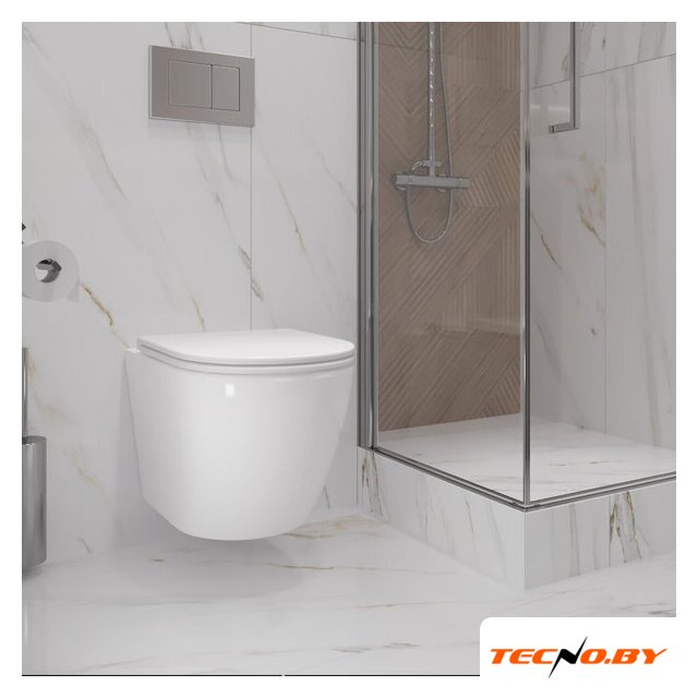 подвесной, конструкция: без бачка, задний подвод воды, горизонтальный выпуск, однорежимный слив, с сиденьем, безободковый