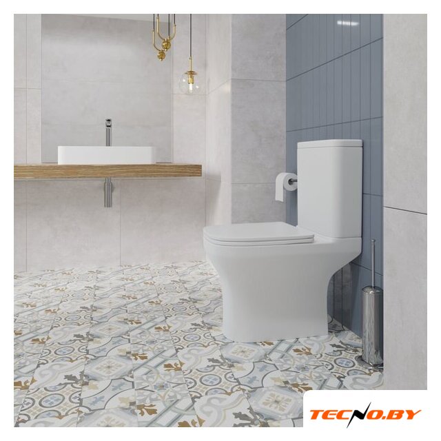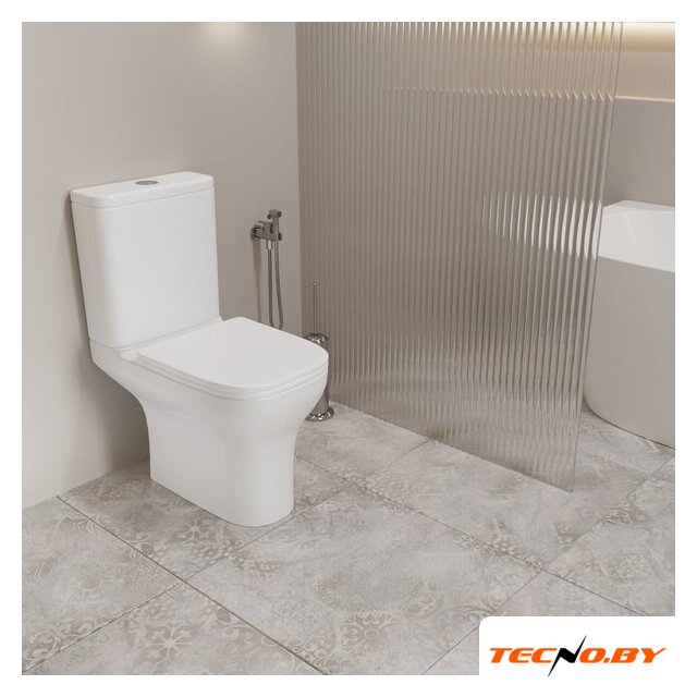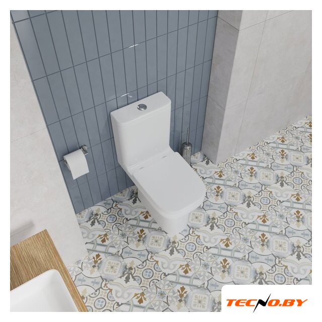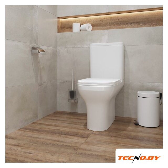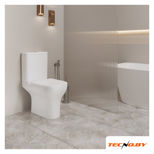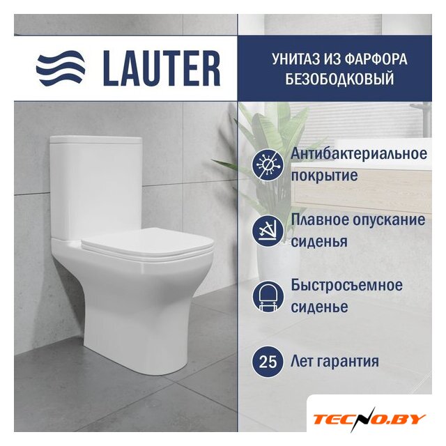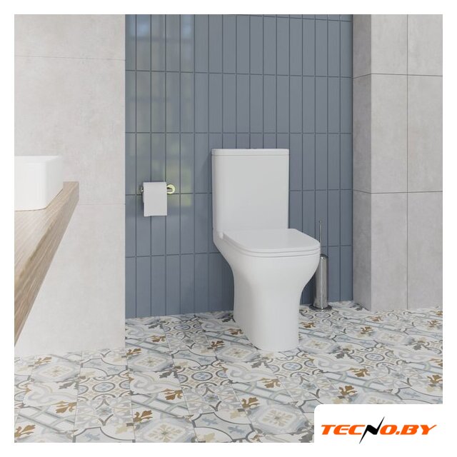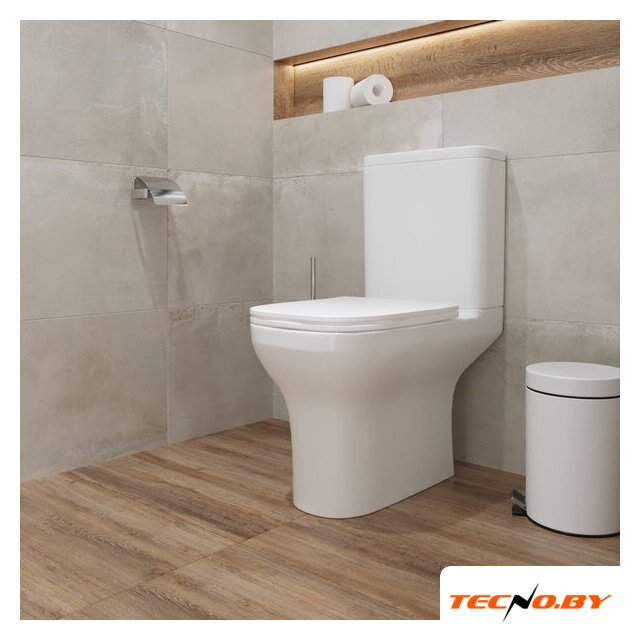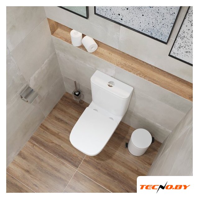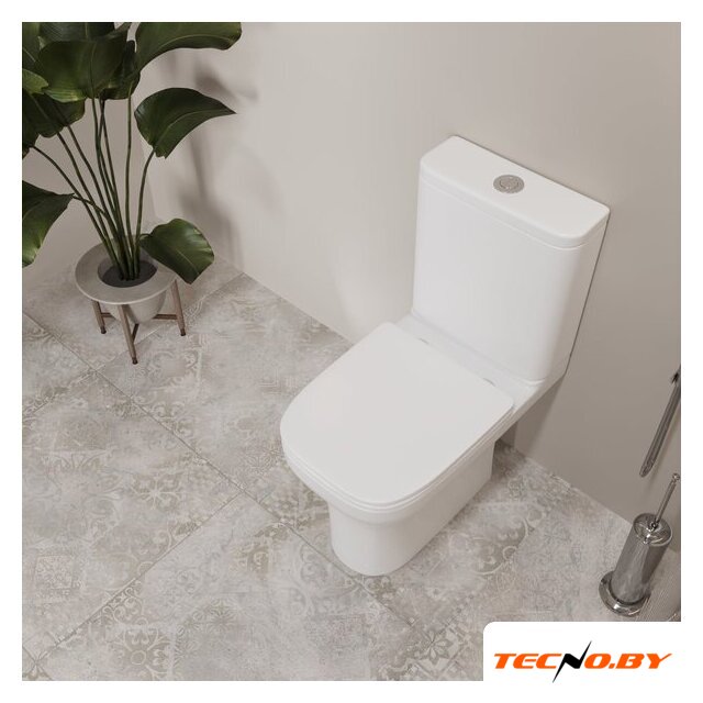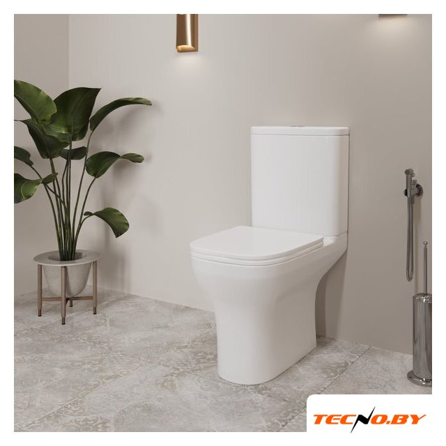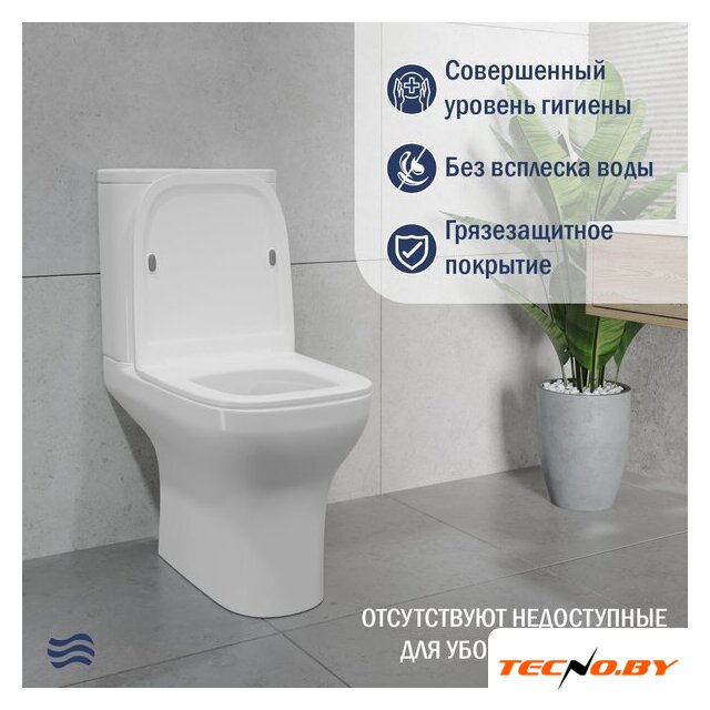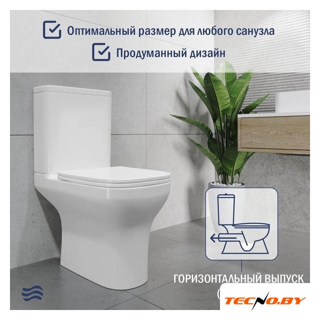 напольный, конструкция: компакт, нижний подвод воды, горизонтальный выпуск, двухрежимный слив, с сиденьем, безободковый
