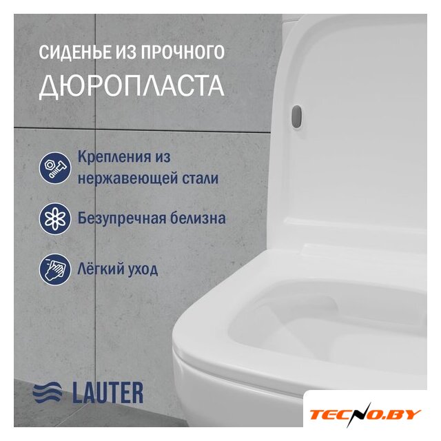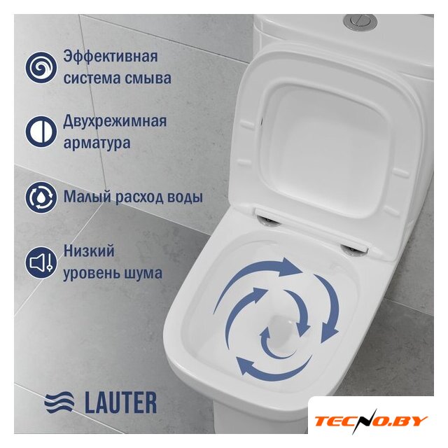 напольный, конструкция: компакт, нижний подвод воды, горизонтальный выпуск, двухрежимный слив, с сиденьем