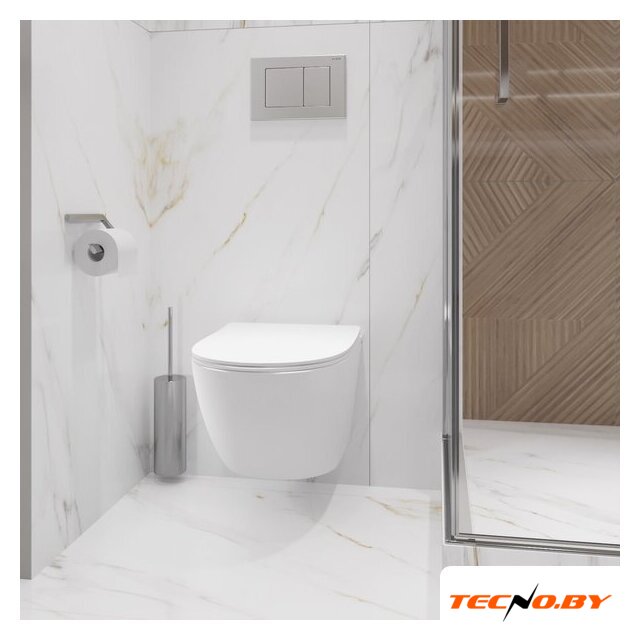 подвесной, конструкция: без бачка, задний подвод воды, горизонтальный выпуск, однорежимный слив, с сиденьем, безободковый