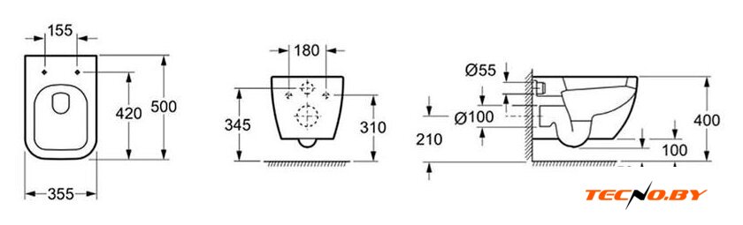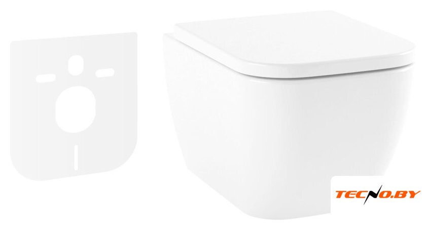подвесной, конструкция: без бачка, задний подвод воды, горизонтальный выпуск, двухрежимный слив, с сиденьем, безободковый