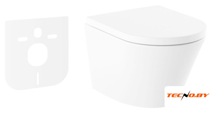подвесной, конструкция: без бачка, задний подвод воды, горизонтальный выпуск, однорежимный слив, с сиденьем, безободковый