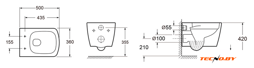 С учетом небольших габаритов — ширина 36 см, глубина 50 см и высота 35,5 см — этот унитаз идеально подходит для ванных комнат малого и среднего размера. Несмотря на компактность, он не уступает в функциональности и удобстве.