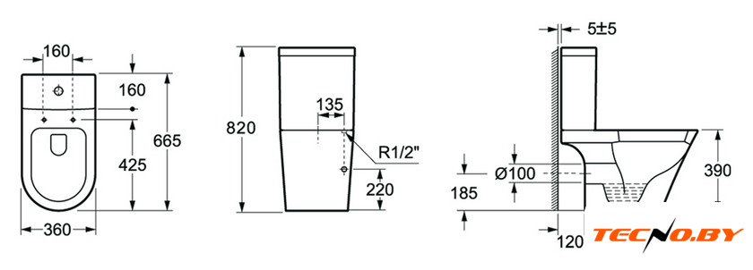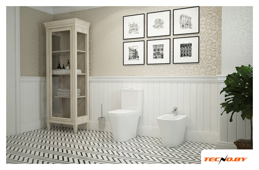 напольный, конструкция: компакт, нижний подвод воды, горизонтальный выпуск
