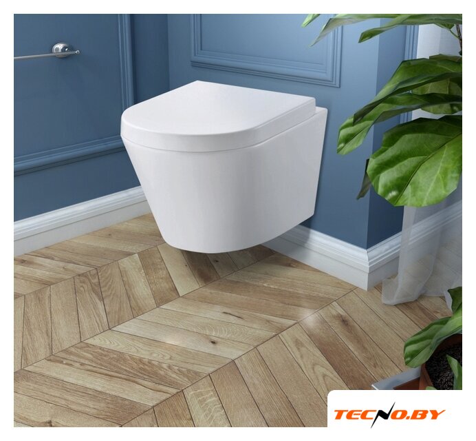 подвесной, без бачка, задний подвод воды, горизонтальный выпуск, с сиденьем